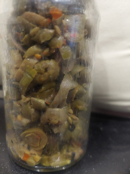 Olive masala pickle pitted with mustard oil